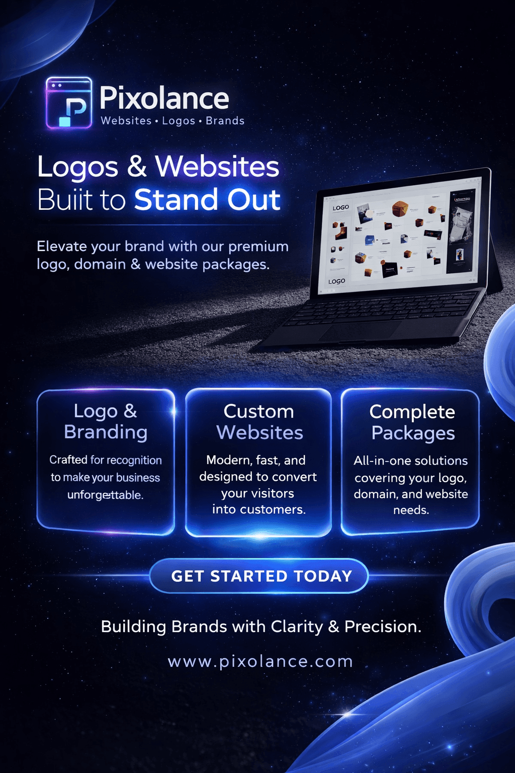 Pixolance is a digital design studio specialising in professional logo design and high-converting website packages for modern businesses. We help brands stand out online through clean visuals, strategic design, and performance-focused websites built to attract, engage, and convert.